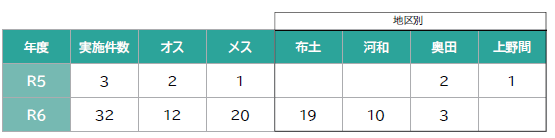 令和5年度から令和6年度の2年間でこのチケットを利用し、地域猫35匹の不妊去勢手術が実施されました。