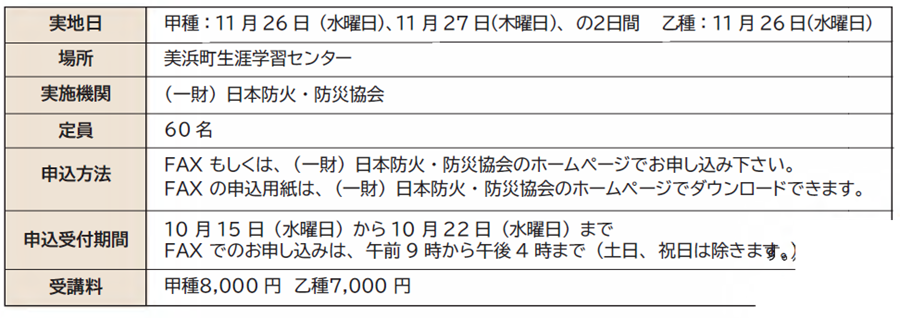 ■防火管理新規講習の開催について