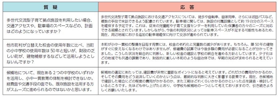 アンケート結果および質疑応答の全内容については、町のホームページに掲載していますので、右の2次元コードよりご覧ください。
