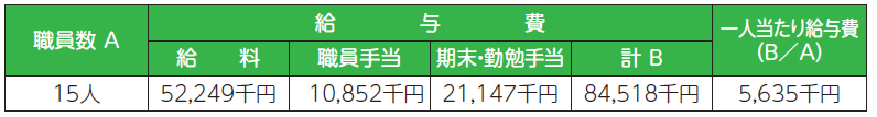 (注)職員手当には、退職手当は含まれていません。職員数Aには再任用職員3名が含まれています。