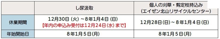 ※年始収集初日が変則的になりますのでご注意ください