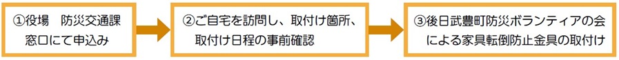 家具の転倒防止は、災害発生時に命を守ることにつながります。この事業を行っていて、取り付けてよかったという言葉をたくさんいただきますが、同時にこのような事業を無料で行っていることを知らなかったというお話も多く聞きます。対象の世帯は、1世帯4点まで家具に転倒防止金具を取り付けられますので、遠慮なく家具等転倒防止金具取付け事業をご活用ください。