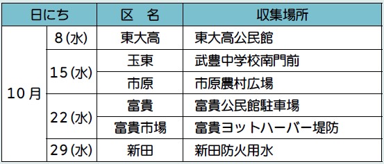 くらし 粗大ごみ収集日(10月) 27/51 前の記事 次の記事 発行日 : 2025年09月01日 自治体名 : 愛知県武豊町 広報紙名 : 広報たけとよ 2025年9月号 収集時間:7:00~9:00(雨天決行) 粗大ごみの出し方について、詳しくは町ホームページでご確認ください ※二次元コードは本紙参照 問合せ:役場 環境課 Tweet シェアする マイナンバーカード手続きの休日開庁日を変更します! ゼロカーボンシティたけとよ 環境コラム vol.28