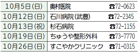 ※前月の休日診療は前月号の広報たけとよに掲載しています
