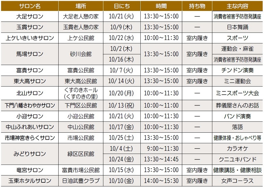 ※状況によっては日時や内容の変更、サロンが中止となる場合があります