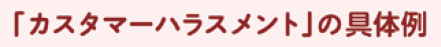 「カスハラ」とは、「カスタマーハラスメント」の略で、お客さまや取引先からの暴言、理不尽なクレーム、無理な要求等、行きすぎた迷惑行為のことを指します。