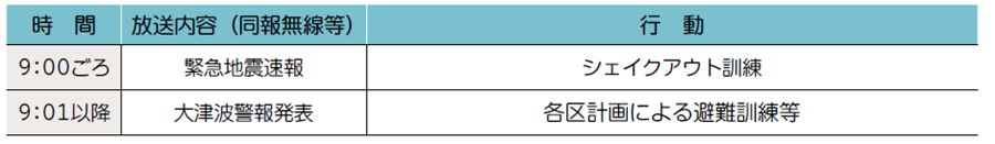 ※大津波警報発表以降の避難訓練や避難所運営訓練等については、現在各区(自主防災会)で検討中です
