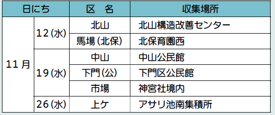 くらし 粗大ごみ収集日(11月) 27/50 前の記事 次の記事 発行日 : 2025年10月01日 自治体名 : 愛知県武豊町 広報紙名 : 広報たけとよ 2025年10月号 収集時間:7:00~9:00(雨天決行) 粗大ごみの出し方について、詳しくは町ホームページでご確認ください 問合せ:役場 環境課 Tweet シェアする 武豊北インターチェンジ供用開始時期のお知らせ ゼロカーボンシティたけとよ 環境コラム vol.29
