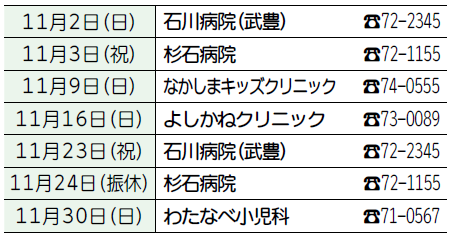 ※前月の休日診療は前月号の広報たけとよに掲載しています