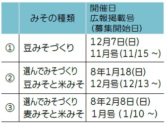 ※今年度のみそづくり教室の予定です。