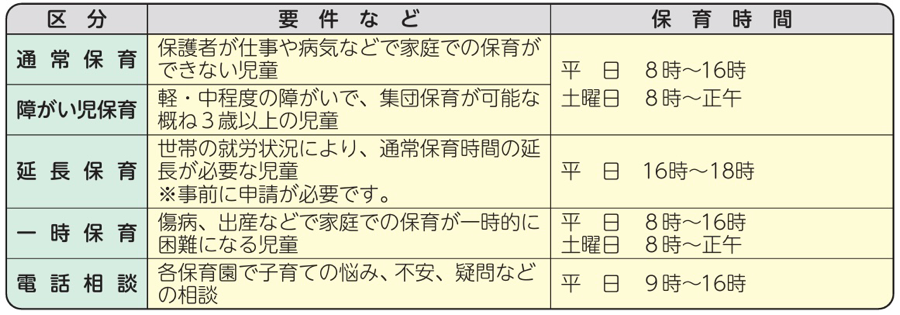 問い合わせ先:町民課保育園担当