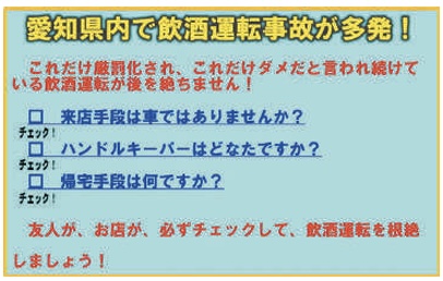 愛知県内では、依然として飲酒運転に起因する重大な交通事故が無くなりません。