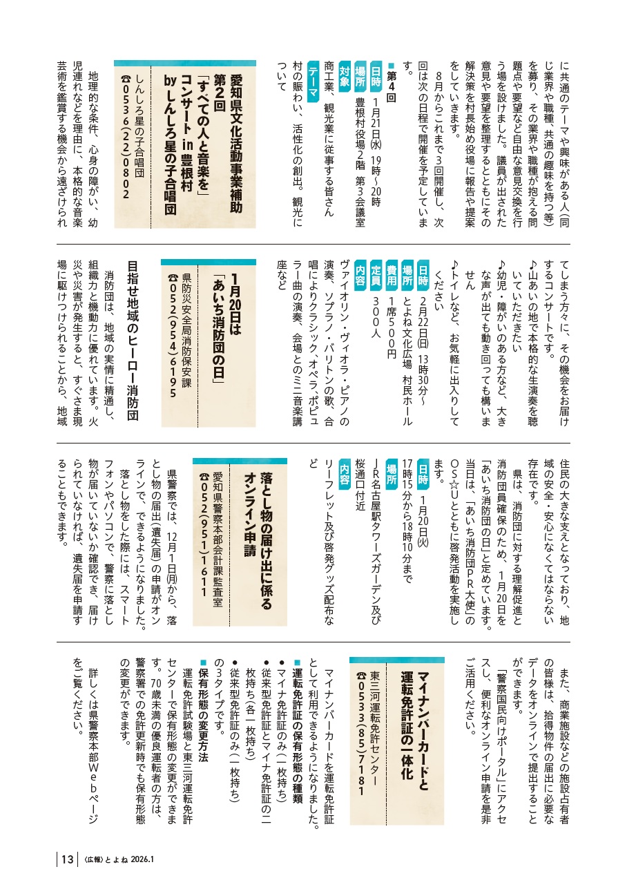 くらし 広報とよね 令和8年1月号 P.13 11/18 前の記事 次の記事 発行日 : 2026年01月01日 自治体名 : 愛知県豊根村 広報紙名 : 広報とよね 令和8年1月号 Tweet シェアする 広報とよね 令和8年1月号 P.12 広報とよね 令和8年1月号 P.14