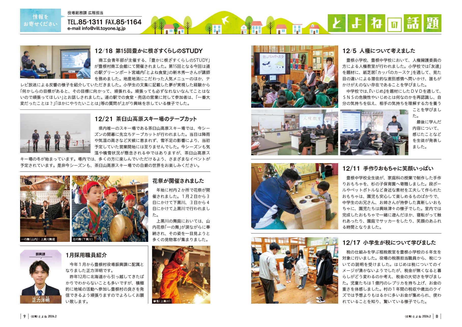 イベント 広報とよね 令和8年2月号 P.8-9 7/16 前の記事 次の記事 発行日 : 2026年02月01日 自治体名 : 愛知県豊根村 広報紙名 : 広報とよね 令和8年2月号 Tweet シェアする 広報とよね 令和8年2月号 P.6-7 広報とよね 令和8年2月号 P.10