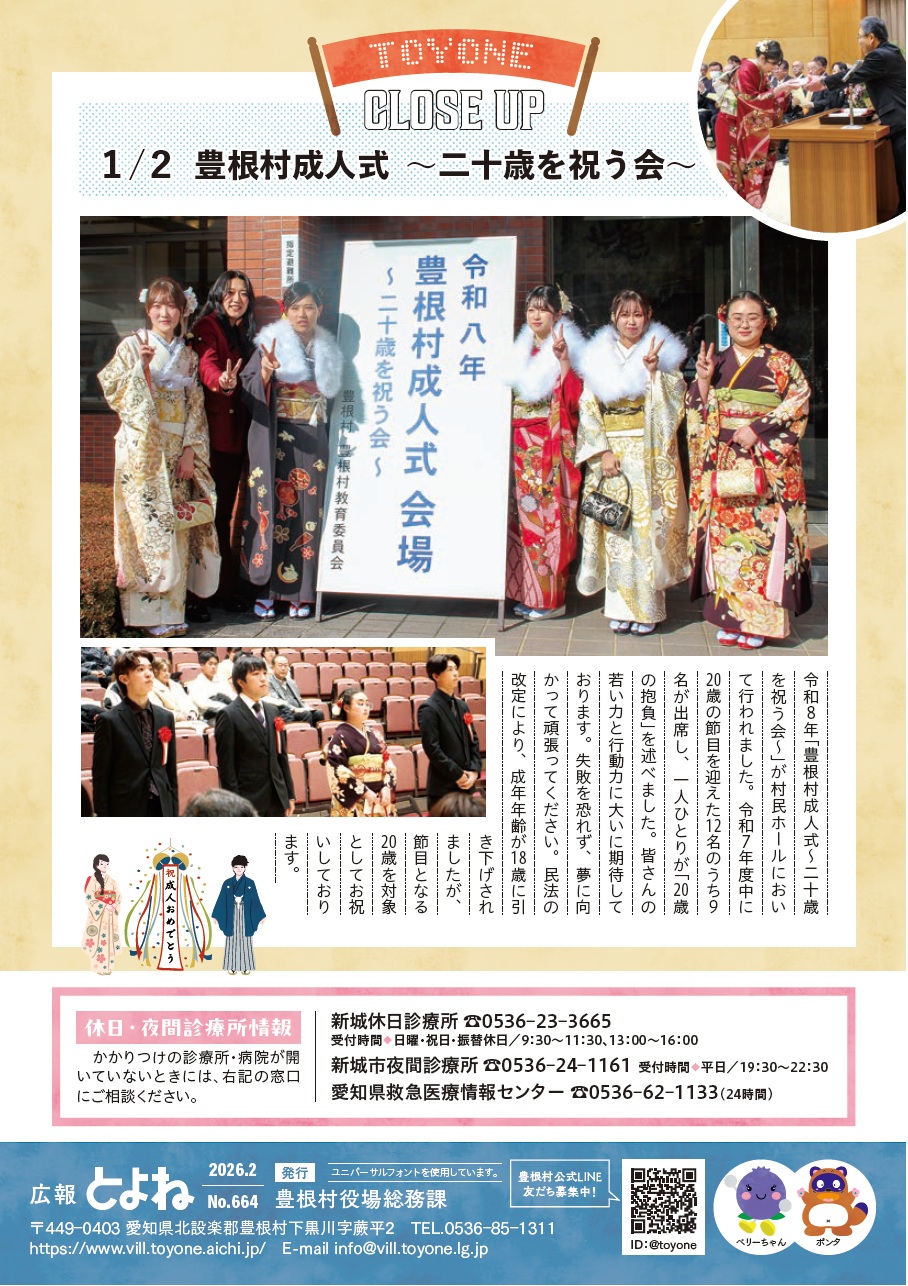 イベント 広報とよね 令和8年2月号 裏表紙 16/16 前の記事 発行日 : 2026年02月01日 自治体名 : 愛知県豊根村 広報紙名 : 広報とよね 令和8年2月号 Tweet シェアする 広報とよね 令和8年2月号 P.17