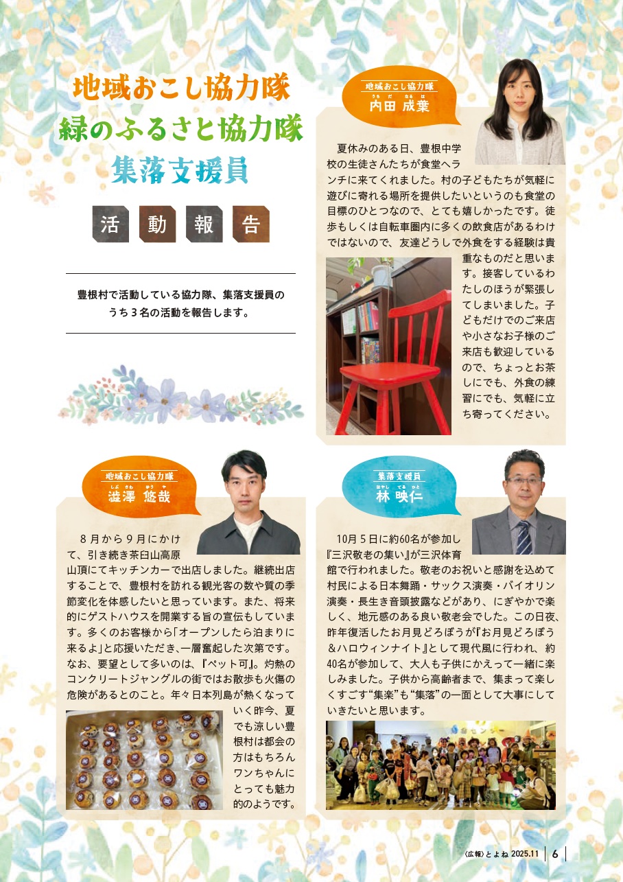しごと 広報とよね 令和7年11月号 P.6 5/15 前の記事 次の記事 発行日 : 2025年11月01日 自治体名 : 愛知県豊根村 広報紙名 : 広報とよね 令和7年11月号 Tweet シェアする 広報とよね 令和7年11月号 P.4-5 広報とよね 令和7年11月号 P.7
