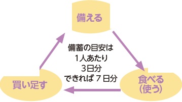備蓄している食料品や飲料水などを定期的に消費し、あらためて補充する「ローリングストック法」も有効です。