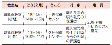 月齢に合わせた離乳食の進め方や調理のポイントを学べる教室を開催します。申し込み方法など、詳しくは市ホームページをご覧ください。