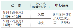 また、9月24日~30日は、結核・呼吸器感染症の予防週間です。長く続く咳・痰(たん)・微熱・体のだるさがある場合は、早めに医療機関を受診しましょう。