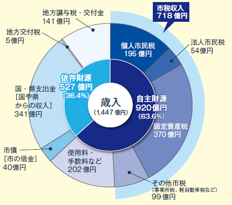 市税や使用料・手数料など、市が自主的に収入できるお金で、自由に使うことができます