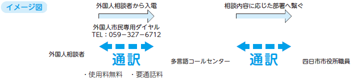 外国人市民の増加や多言語によるサポート体制強化の必要に伴い、総合的な相談業務を円滑に実施するための外国人市民専用ダイヤルを設置しました。ぜひ、通訳による電話での多言語三者間通訳サービスを活用ください。