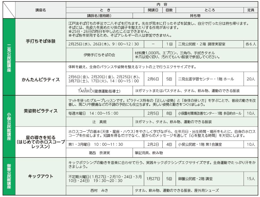・小俣公民館講座…社会教育課〔小俣総合支所〕【電話】22-7886【FAX】23-8641
