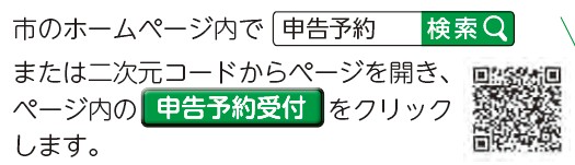 2月10日(火)~3月16日(月)に、市が設ける市民税・県民税の申告受付会場は、待ち時間を少なくし、混雑を緩和させるため、事前予約制で行います。