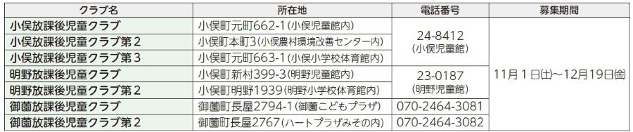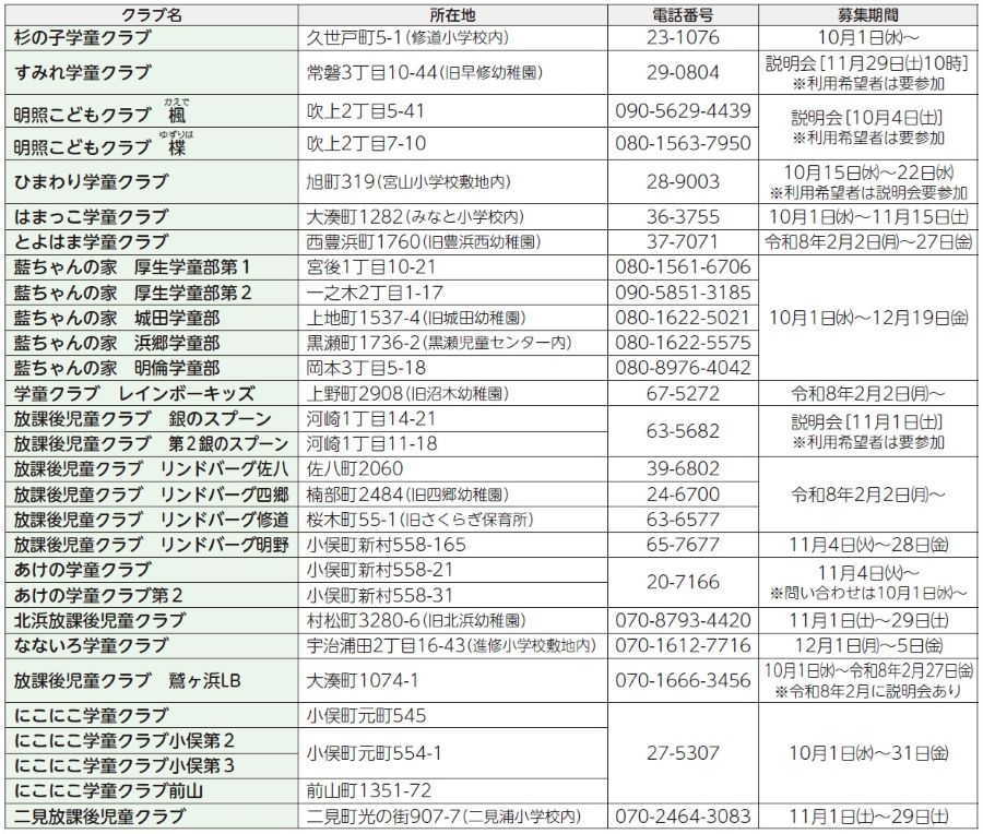 令和8年度にクラブの利用を希望する人は、各クラブへ直接申し込んでください。