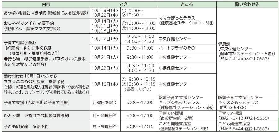 このコーナーでは、主に妊婦の皆さんから就学までの子どもがいる保護者の皆さんを中心に、役に立つ情報をまとめてお知らせします。