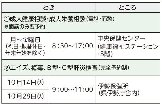 申し込み・問い合わせ:健康課(中央保健センター)〔宮後1丁目・健康福祉ステーション 5階〕(8時30分~17時15分)