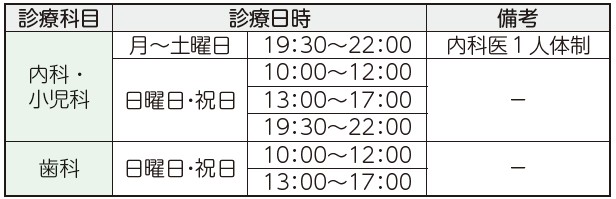 ※気象状況により臨時休診となることがあります。その場合は、市のホームページ・ケーブルテレビなどでお知らせします。