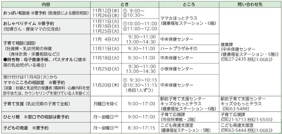 このコーナーでは、主に妊婦の皆さんから就学までの子どもがいる保護者の皆さんを中心に、役に立つ情報をまとめてお知らせします。
