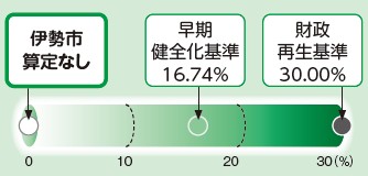 令和6年度決算に基づく伊勢市の健全化判断比率、および資金不足比率は、すべての指標で基準内に収まっています。