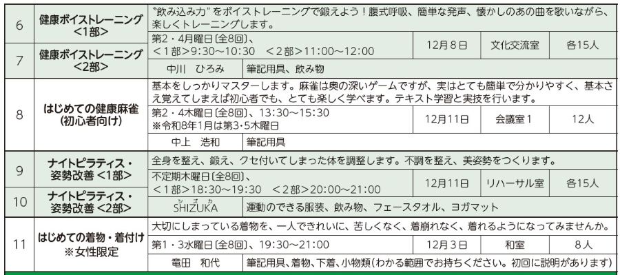 定員に満たない講座は、11月18日(火)から開講日の1週間前まで、電話で先着順に受け付けます。(受付時間:8時30分~21時)