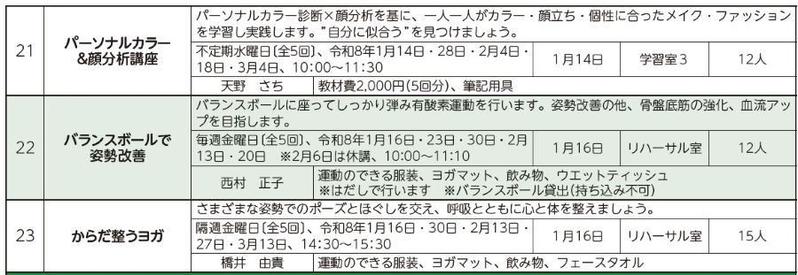 生涯学習のきっかけづくりとして、22~24ページのとおり、講座を開講します。