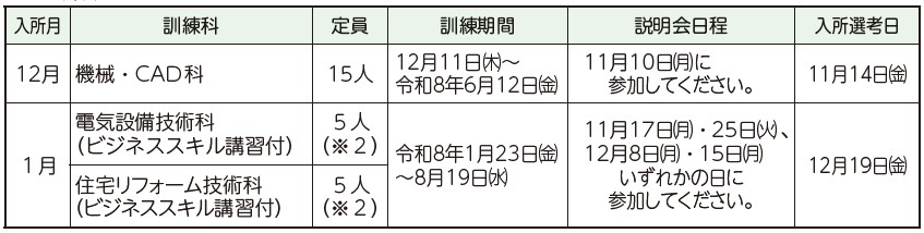 ※2 ビジネススキル講習付き訓練は定員を超えて入所する場合があります。