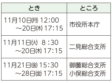 申し込み:11月5日(水)・10時から、直接または電話で同館へ