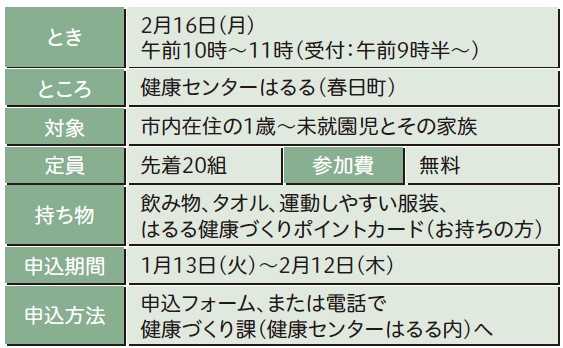 問い合わせ・申込:こども家庭センター(健康センターはるる内)