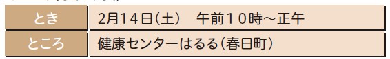問い合わせ・申込:健康づくり課(健康センターはるる内)