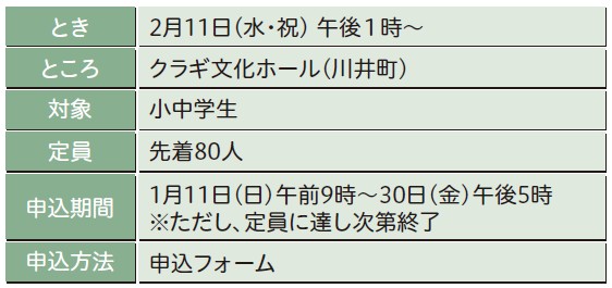 問い合わせ・申込:クラギ文化ホール