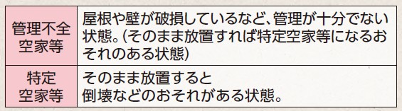 空き家の管理が十分でなく「管理不全空家等」に該当した場合、「特定空家等」と同様に指導・勧告の対象になります。勧告を受けると、敷地の住宅用地特例が除外され、固定資産税と都市計画税が高くなる場合がありますので、空き家の適切な管理をお願いします。