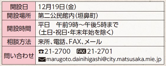 新たに第二・東地区を担当とする「福祉まるごと相談室」を開設します。「第二・東 福祉まるごと相談室」の設置をもって、市内全域(13か所)への「福祉まるごと相談室」開設が完了します。「福祉まるごと相談室」は、地域の皆さんの身近な相談先として日頃の暮らしの中で、悩んでいること、どこに相談していいかわからないことなどの健康と福祉に関する相談に応じます。どなたでも相談できます。本人だけでなく、周囲の方からの相談も受け付けます。