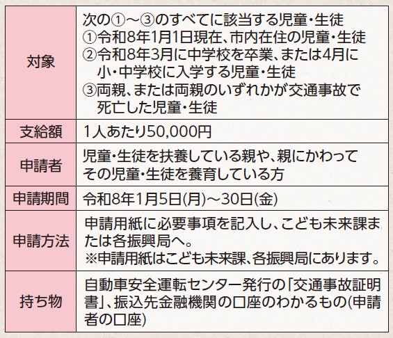 ■交通遺児のお子さまに入学・進学、卒業祝金を支給します。