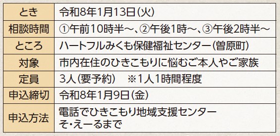 ひきこもりは、「特別なものではなく、誰にでも起こりうるもの」です。ひとりで、家族だけで悩まないで、ぜひご相談ください。