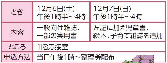 とき:12月13日(土)午前10時~正午 14日(日)午後2時~4時