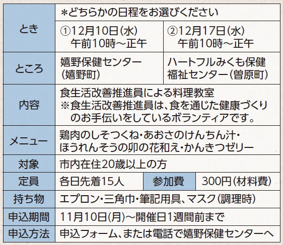 問合せ・申込み:嬉野保健センター