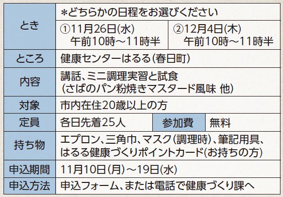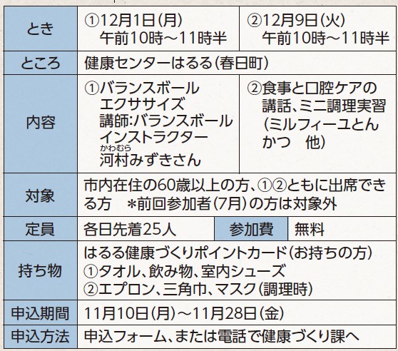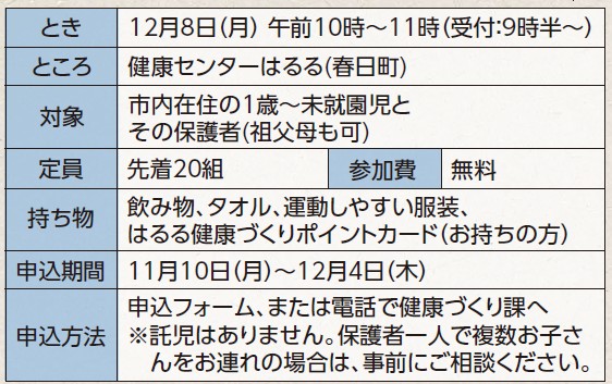 問合せ・申込み:健康づくり課(健康センターはるる内)