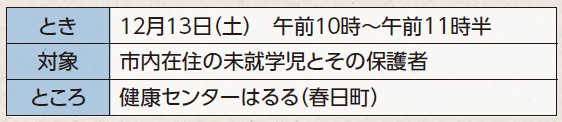 問合せ:こども家庭センター(健康センターはるる内)