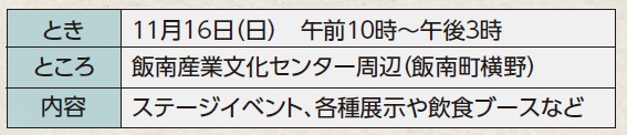 問合せ:いいなん・ふれあい祭り実行委員会(飯南振興局地域振興課内)