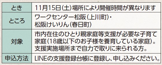ひとり親の家庭に向けて、企業や一般市民の方からご寄附をいただいた食品の配布支援を行います。